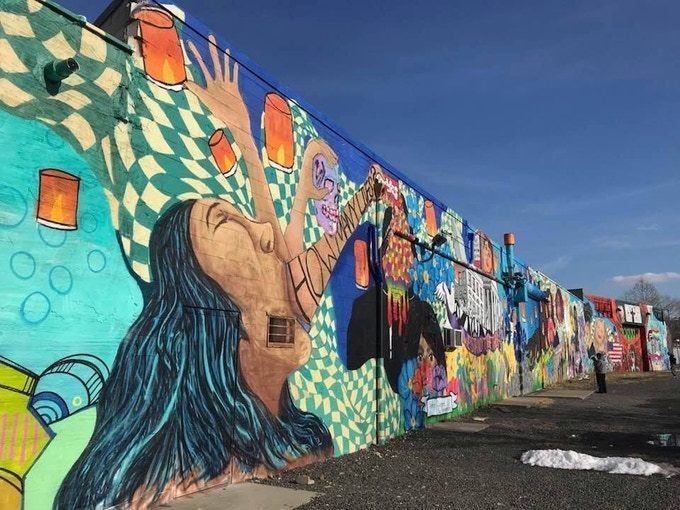 The images in the mural include those of Trayvon Martin, Sierra Clayborn, Philando Castile, victims of the Aurora, Pulse, and Sandy Hook mass shootings, and Jersey City victim Officer Melvin Santiago, among others.